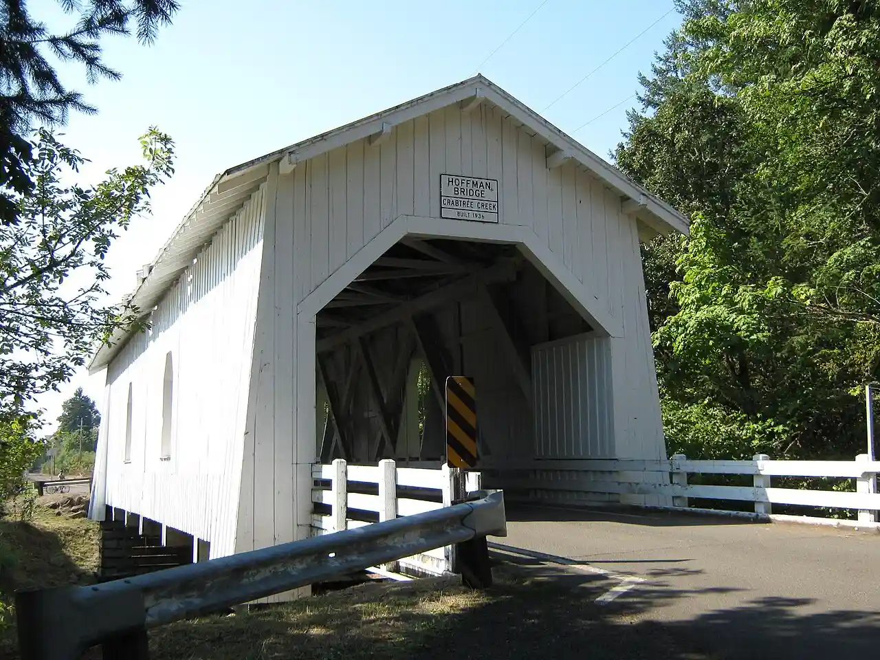 The Hoffman Bridge is a covered bridge near Crabtree in Linn County in the U.S. state of Oregon. It was added to the National Register of Historic Places as Crabtree Creek – Hoffman Covered Bridge in 1987. Read more on Wikipedia