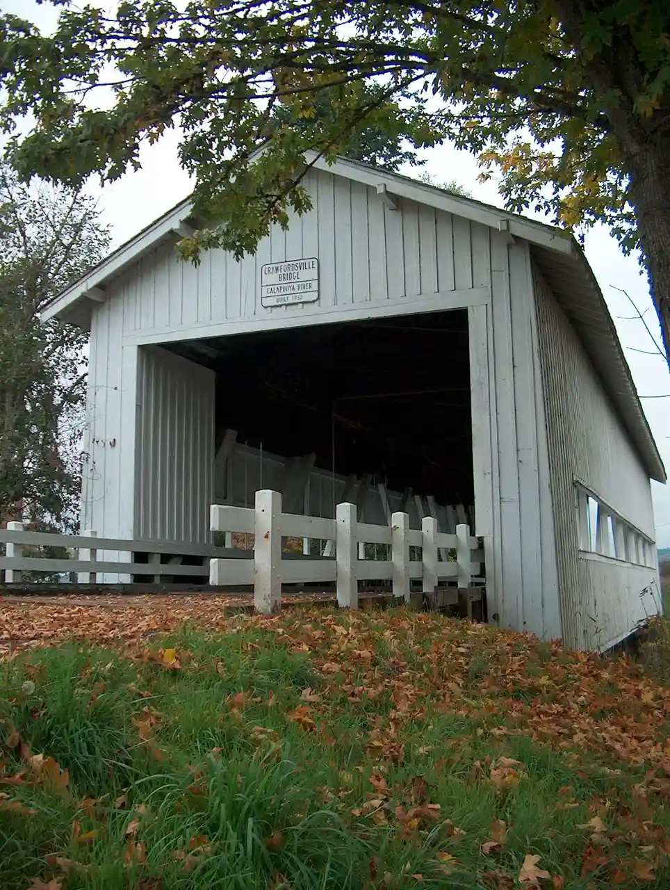 The Crawfordsville Bridge spans the Calapooia River adjacent to Oregon Route 228 near the community of Crawfordsville in Linn County, Oregon, United States. Read more on Wikipedia
