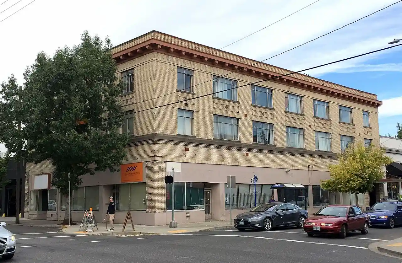 The Vivian Apartments, originally known as the Alco Apartments, are a historic, commercial/apartment building located in Portland, Oregon, United States. Built in 1912 at the northern end of Portland's eastside commercial core, the building typifies the mixed-use commercial development that occurred along Portland's streetcar lines in the eastside area during the early 20th century. It was noted for quality design and construction when it was built, and retains significant character-defining characteristics, including transom windows and recessed entries in the commercial spaces, original fenestration on the rear elevation, a prominent apartment entrance and lobby, and decorative cornice and masonry. The building's significance is strongly echoed in the 21st-century renaissance of mixed-use construction and streetcars in Portland, with a new-generation streetcar line on Martin Luther King Jr. Boulevard immediately opposite the west elevation.. Read more on Wikipedia