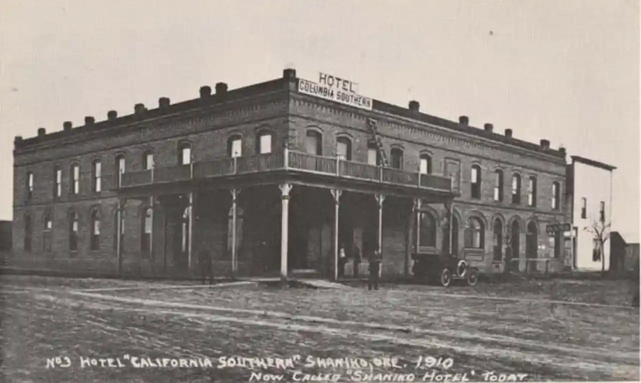 The Columbia Southern Hotel, also known as the Shaniko Hotel, is a historic hotel, located in Shaniko, Oregon, United States. Built by the Columbia Southern Railway in 1900–1902 at the southern terminus of its line, the hotel was and remains the most imposing structure in Shaniko. It was the hub and focal point of the community during the heyday of the local wool industry in the early decades of the 20th century. In addition to lodging, it served as saloon, bank, stagecoach stop, dance hall, and general gathering place. Read more on Wikipedia