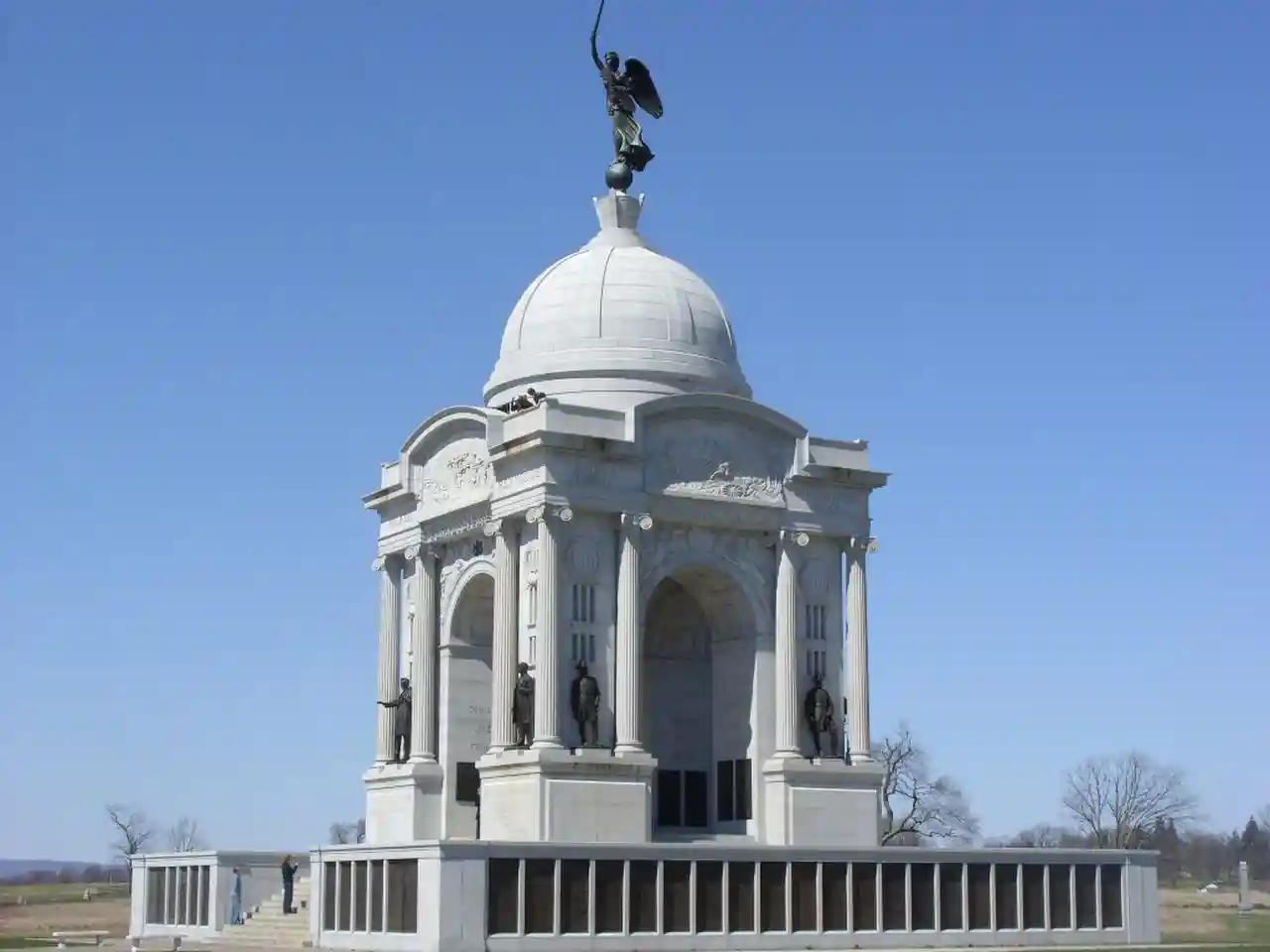 The Pennsylvania State Memorial is a monument in Gettysburg National Military Park that commemorates the 34,530 Pennsylvania soldiers who fought in the July 1 to 3, 1863 Battle of Gettysburg during the American Civil War. The memorial stands along Cemetery Ridge, the Union battle line on July 2, 1863. Completed in 1914, it is the largest of the state monuments on the Gettysburg Battlefield. Read more on Wikipedia