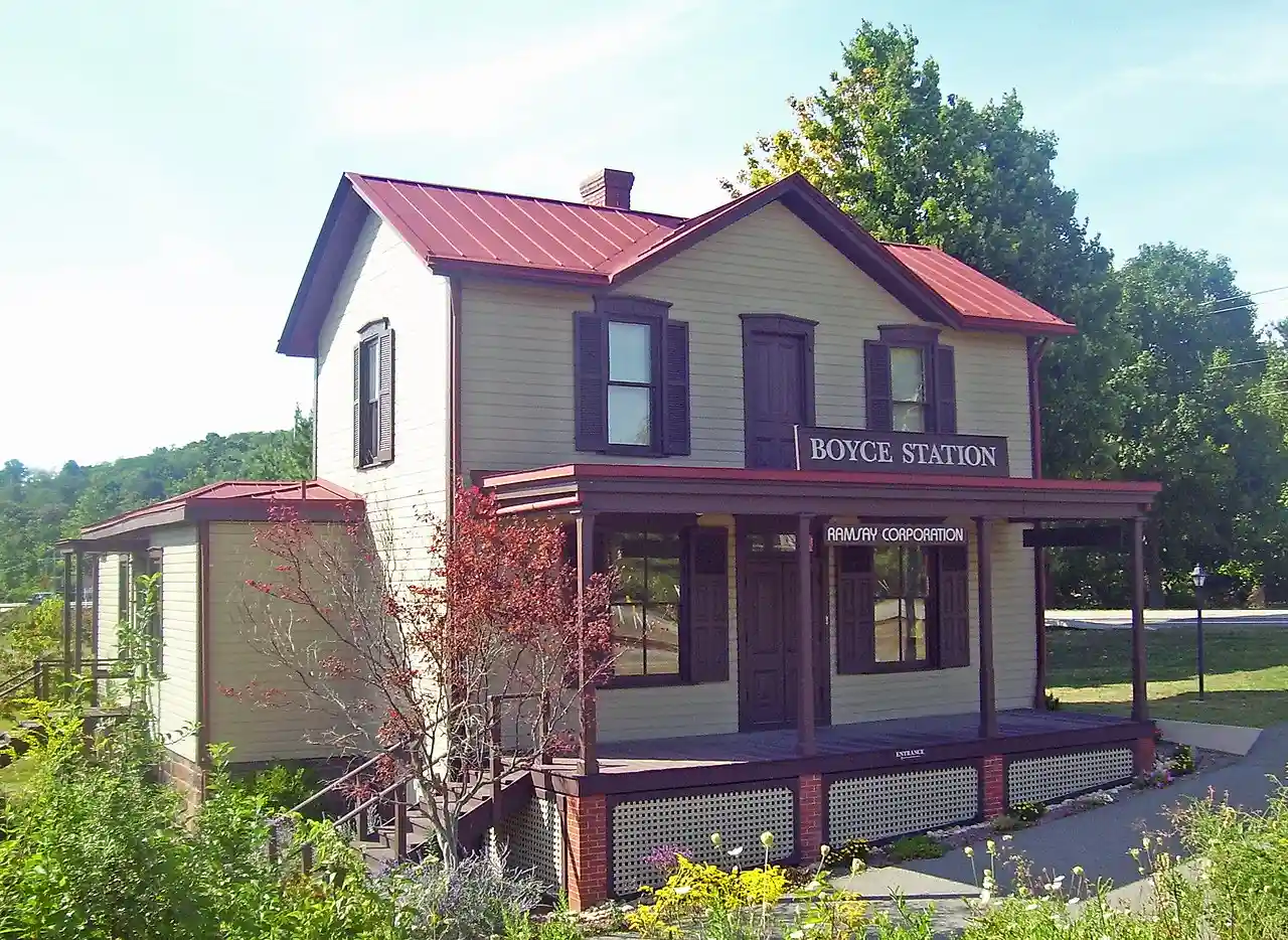 Boyce is a disused train station located at the junction of Boyce Road and the tracks of the Chartiers Branch in Upper St. Clair, Pennsylvania, United States. It was built in 1900, and housed not only the rail operations but a post office and general store for the small community it served. Read more on Wikipedia