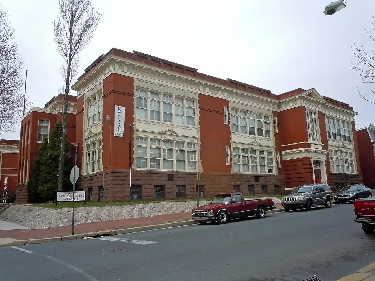 Charles S. Foos Elementary School, also known as Douglass and Weiser School, is a historic elementary school building located at Reading, Berks County, Pennsylvania. It was built in 1903 and was expanded and renovated in 1912. A small addition was built in 1921. It was originally in the Romanesque Revival style, but transformed to the Classical Revival style with the renovations. The C-shaped brick building contains 21 classrooms and an auditorium that seats over 200. The school closed in 1979. Note: This includes Part of the very large school building is now a nursery school, and part condominiums. Read more on Wikipedia