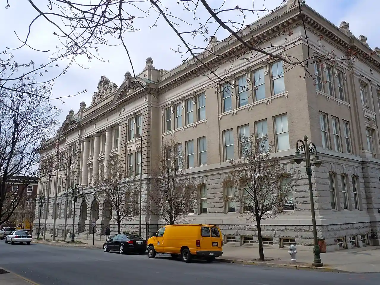 City Hall, originally known as Boy's High School, is a historic city hall located Reading, Berks County, Pennsylvania. It was built in 1904, as the high school for boys, and converted to use as a city hall in 1929. It is a three-story, with basement, granite and gray brick building in the Beaux Arts style. It features terra cotta decorative elements and measures 210 feet by 201 feet. Note: This includes Read more on Wikipedia