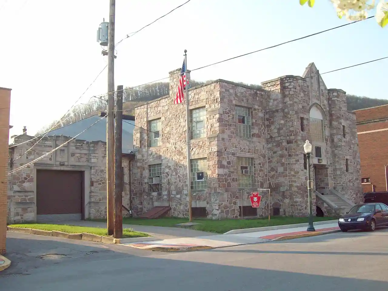 Tyrone Armory is an historic National Guard armory located at Tyrone, Blair County, Pennsylvania. It was built between 1912 and 1918, and is an "I"-plan building built of Medina sandstone in the Late Gothic Revival style. The two-story front section houses administrative functions, and the rear is the former stable area. Between these sections is the drill hall, which has a hipped roof. Note: This includes Read more on Wikipedia