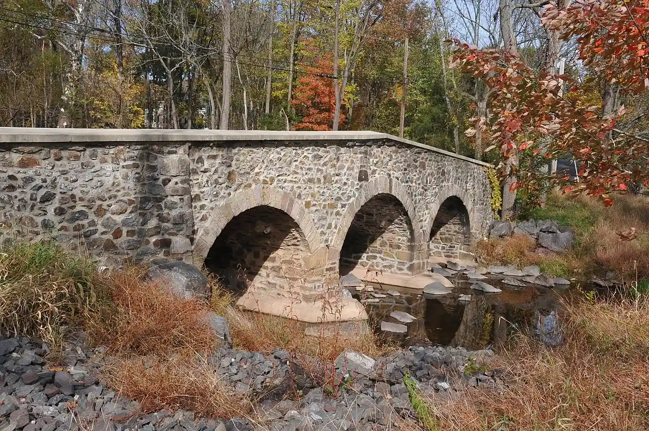 Atkinson Road Bridge, also known as County Bridge 305, is a historic stone arch bridge located in Solebury Township, Bucks County, Pennsylvania. It spans Pidcock's Creek. It has three spans, each approximately 20 feet long, and was constructed in 1873. It is of random rubble construction and built of native fieldstone. Note: This includes Read more on Wikipedia