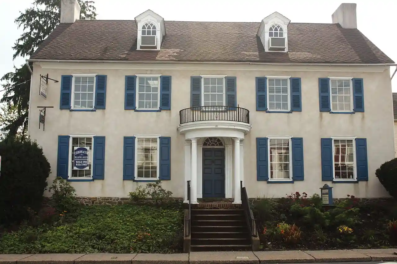 Enoch Roberts House, also known as the Trainer Mansion, is a historic home located at Quakertown, Bucks County, Pennsylvania. It was built about 1814, and is a -story, five-bay, plastered fieldstone dwelling in a vernacular Georgian style. It has an original stone rear kitchen ell. It has a gable roof with dormers added in the 1830s and a semi-circular entrance portico added in the 1940s. Note: This includes Read more on Wikipedia