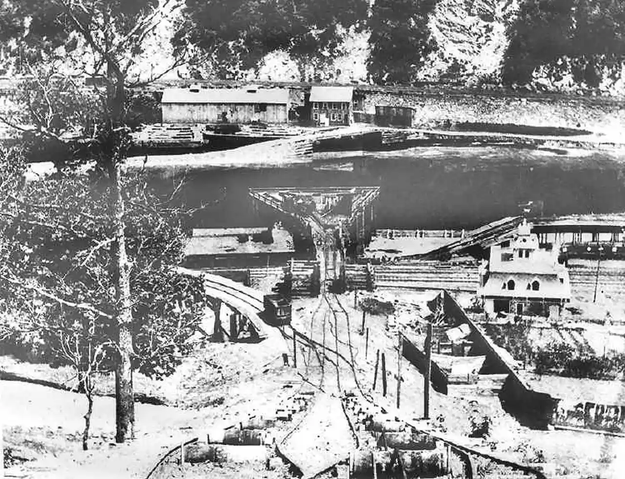 The Mauch Chunk Switchback Railway, also known as the Mauch Chunk and Summit Railroad and occasionally shortened to Mauch Chunk Railway, was a coal-hauling railroad in the mountains of Pennsylvania that was built in 1827 and operated until 1932. It was the second gravity railway constructed in the United States, which was used by the Lehigh Coal & Navigation Company to transport coal from Summit Hill downhill to the Lehigh canal. Read more on Wikipedia