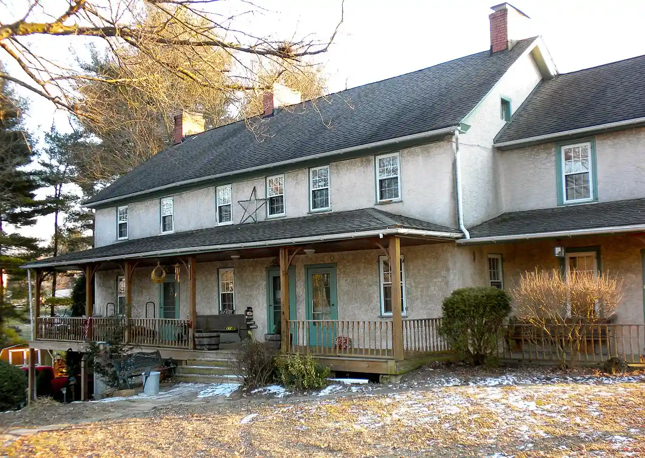 Drovers Inn, also known as the Jesse Bentley House, is a historic inn and tavern located in East Fallowfield Township, Chester County, Pennsylvania. It was built about 1820, and is a two- to three-story, six-bay, banked stuccoed stone structure with a gable roof. It features a full width verandah with a hipped roof. Note: This includes Read more on Wikipedia