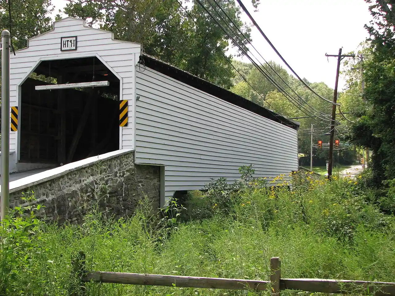 Gibson's Covered Bridge, also known as Harmony Hill Bridge, is an historic, wooden, covered bridge which is located in East Bradford Township and West Bradford Township, Chester County, Pennsylvania. Read more on Wikipedia