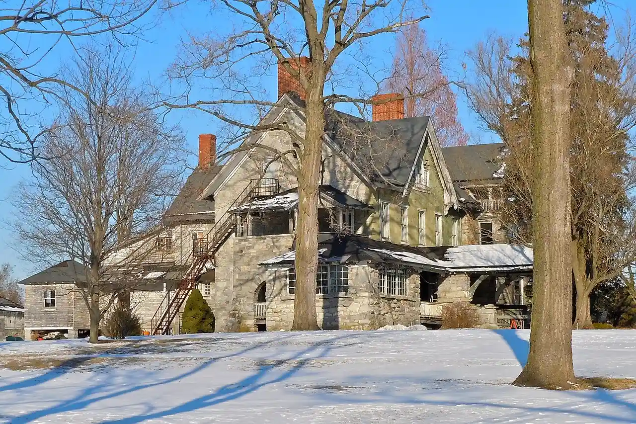 Joseph Price House is a historic home located in West Whiteland Township, Chester County, Pennsylvania. The house was built in 1878, and altered after 1894. The original house was a two-story, L-shaped limestone dwelling with a steeply pitched roof and cross gable. Later alterations added a rambling addition, porte cochere, and full length porch. It is in a Queen Anne / Gothic style. Note: This includes Read more on Wikipedia