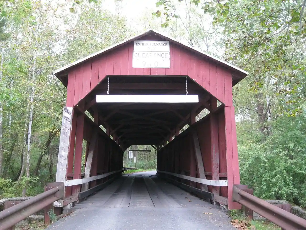The Furnace Covered Bridge No. 11 is a historic wooden covered bridge located at Cleveland Township in Columbia County, Pennsylvania. It is a , Queen Post Truss bridge with a tarred metal roof, constructed in 1882. It crosses the North Branch of Roaring Creek. It is one of 28 historic covered bridges in Columbia and Montour Counties. Note: This includes Read more on Wikipedia