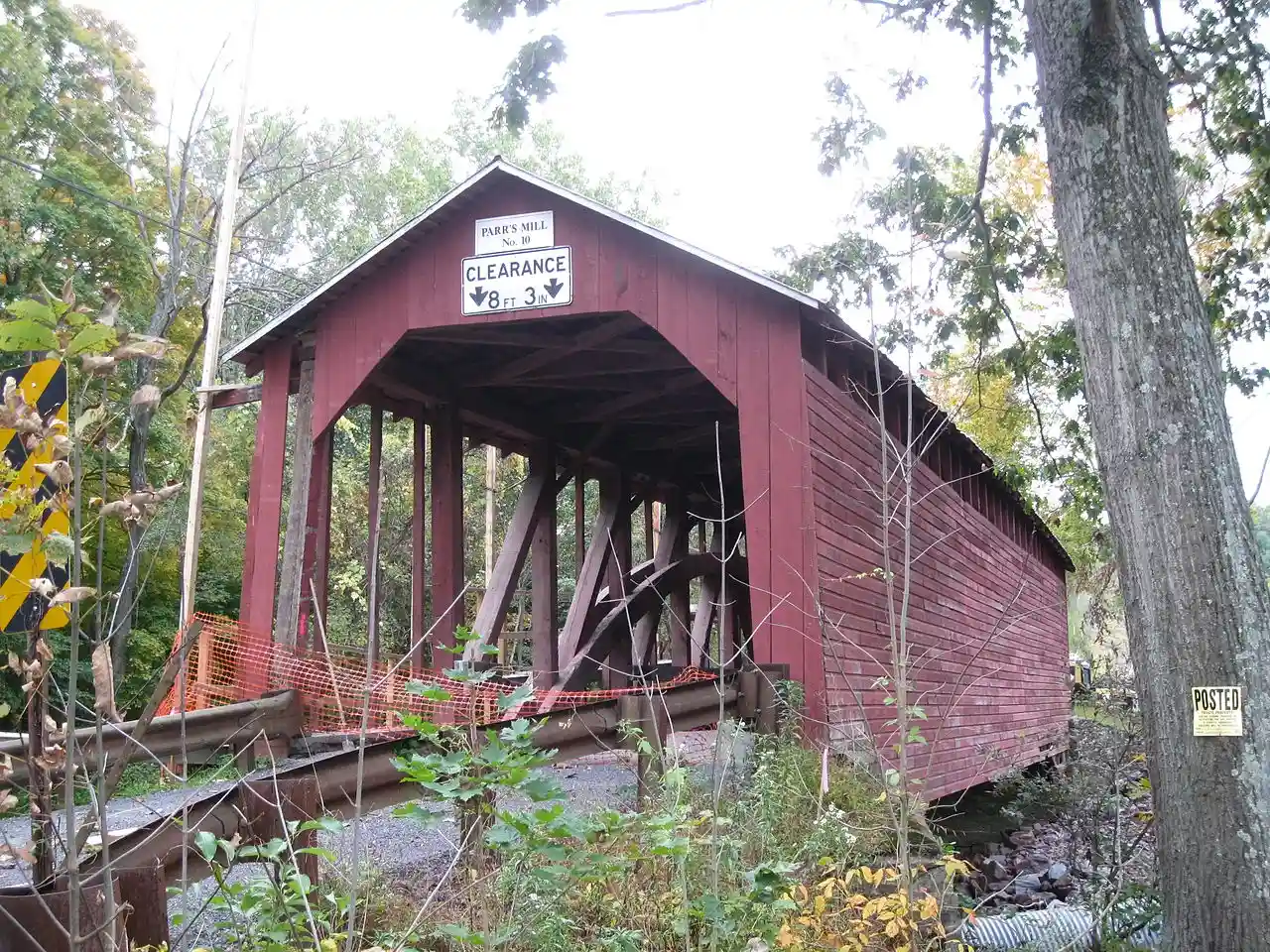 The Parr's Mill Covered Bridge No. 10 is an historic, American wooden covered bridge that is located in Cleveland Township and Franklin Township in Columbia County, Pennsylvania. Read more on Wikipedia