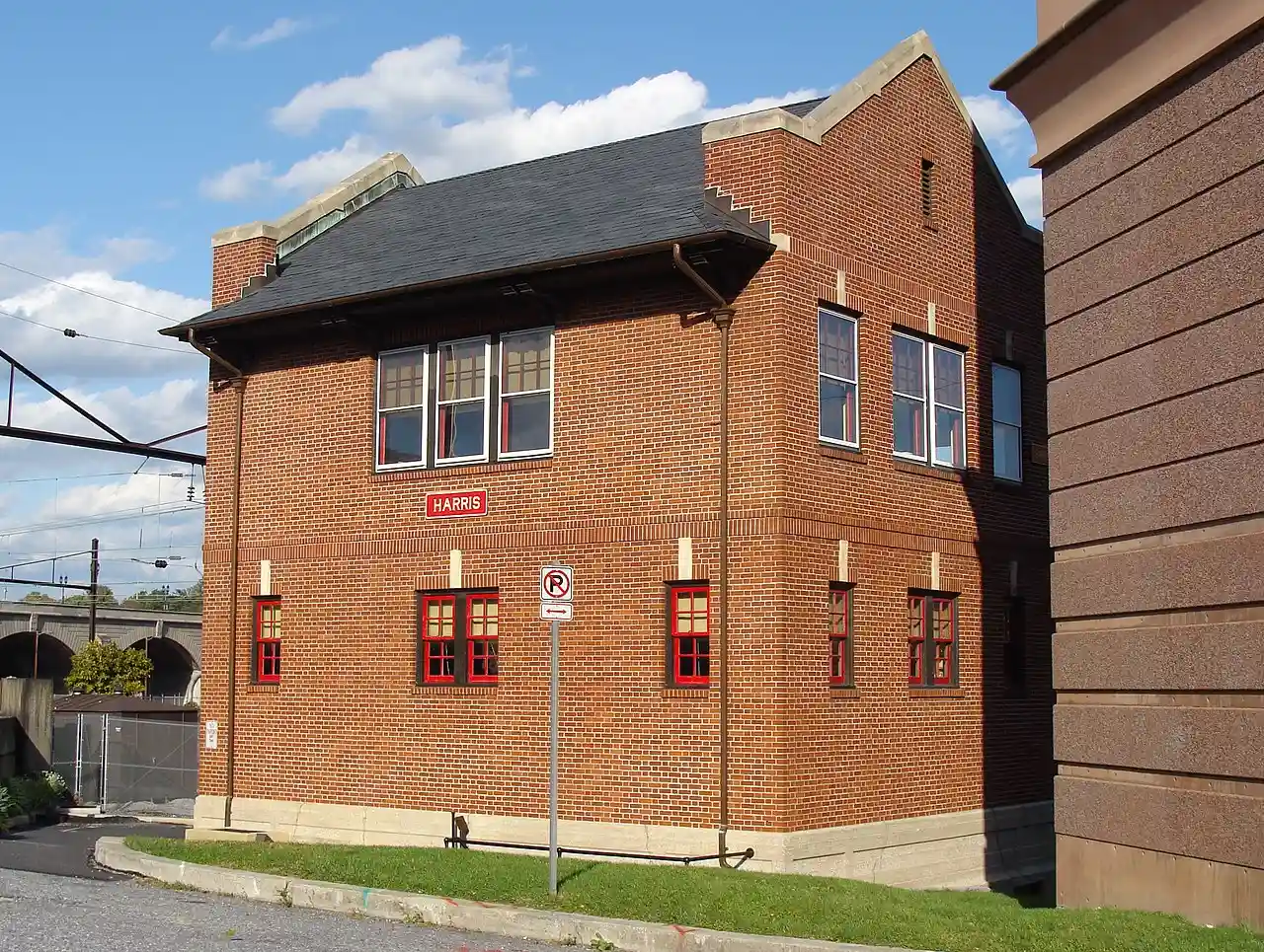Harris Switch Tower, also known as HG Tower or Harris Tower, is an interlocking tower in Harrisburg, Pennsylvania in the United States. The tower was built in 1929 by the Pennsylvania Railroad and remained in operation until it was closed in 1991 by Amtrak. Harris was purchased by the local chapter of the National Railway Historical Society in 1992 and listed on the National Register of Historic Places in 1994. Read more on Wikipedia