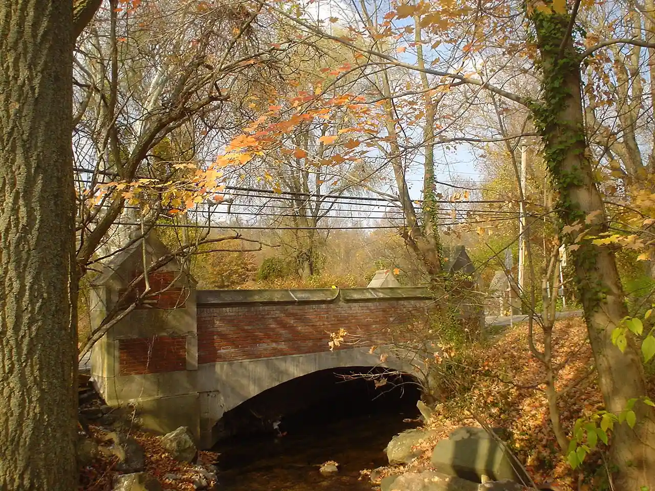Bridge in Radnor Township No. 2 is a historic brick and concrete arch bridge located at Villanova in Delaware County, Pennsylvania. It was built in 1905, and is a , arch bridge with a single arch with a span. It features an ornate parapet cap. It spans the Meadowbrook Run. Note: This includes Read more on Wikipedia
