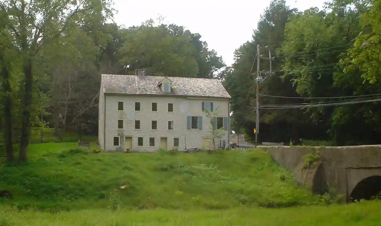 The Crosley–Garrett Mill Workers' Housing, Store, and Mill Site, also known as Paper Mill House and the William Crosley Store and Mill Workers' House, is a historic mill-related complex located on Darby Creek in Newtown Township, Delaware County, Pennsylvania. The complex consists of a four-family stone Workers' Housing unit (1828), with an attached store (1845), and the archaeological remains of William Crosley's Woolen Mill (1828-1861) and Casper S. Garrett's Union Paper Mill (1869-1889). Read more on Wikipedia