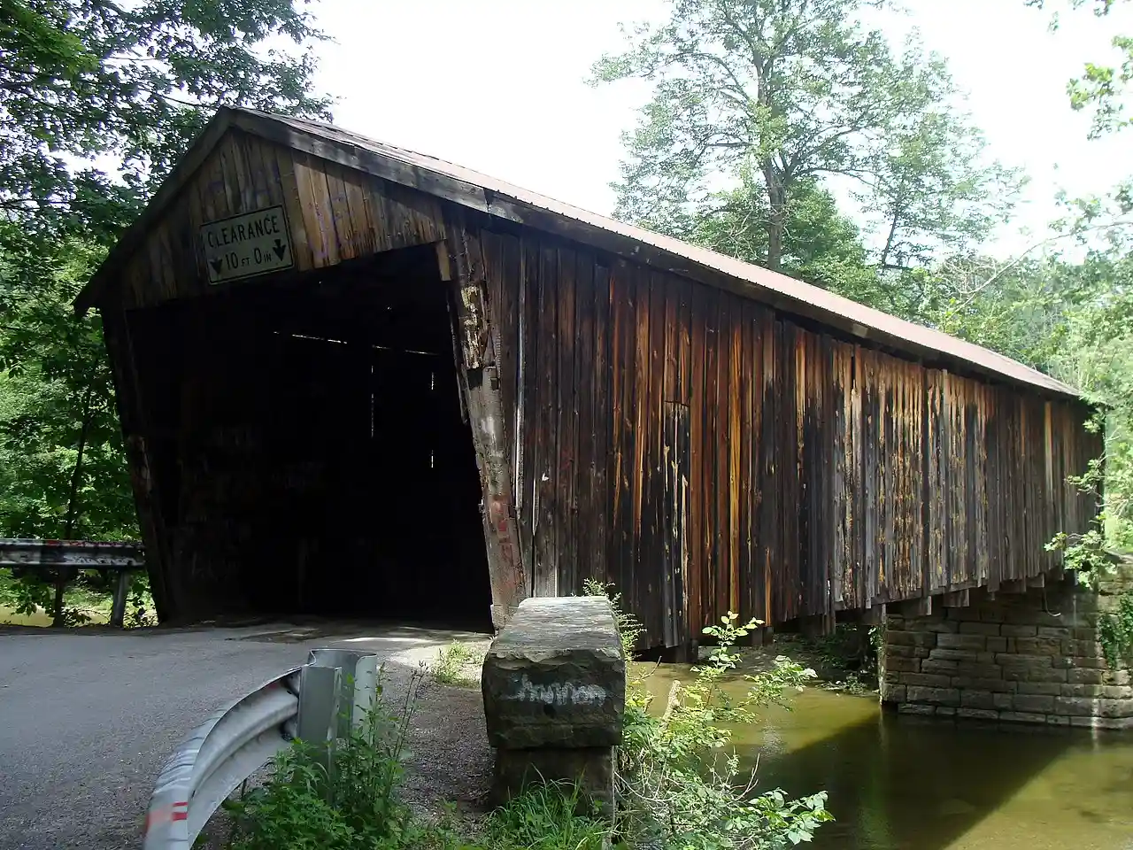 The Gudgeonville Covered Bridge was an long Multiple King-post Truss covered bridge over Elk Creek in Girard Township, Erie County in the U.S. state of Pennsylvania. It was built in 1868 and was listed on the National Register of Historic Places on September 17, 1980. It was destroyed by arson on November 8, 2008. Read more on Wikipedia