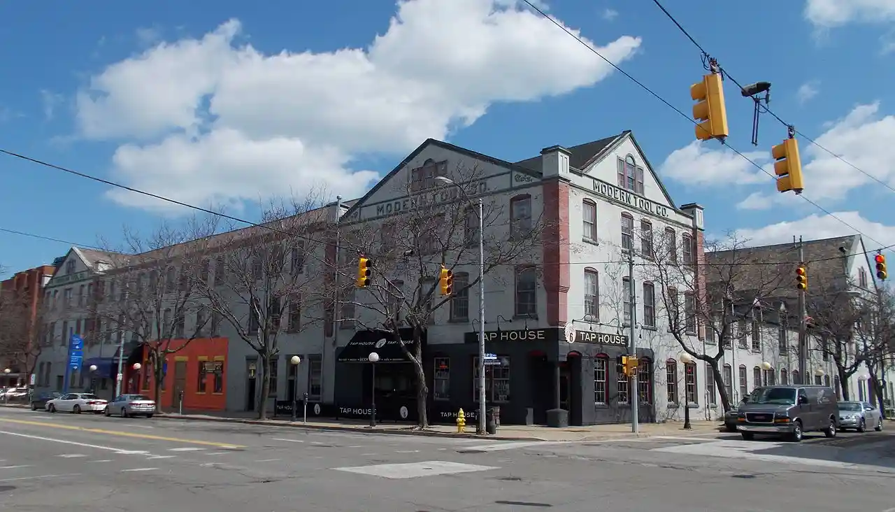 Modern Tool Company, also known as the People's Market House, is a historic building located at Erie, Erie County, Pennsylvania. It is a large eclectic U-shaped, brick building built in stages between 1895 and 1928. The building measures 218 feet by 330 feet. The earliest section was built in 1895, as the People's Market House. It is stories and has a large central pavilion with flanking two-story wings and a gable roof. The State Street side was built in five sections between 1916 and 1924. The northern block was added about 1928. It features Palladian windows and a corner turret. The original building housed a public market until 1902, after which it was leased to the Modern Tool Company, a machine tool manufacturer. Note: This includes Read more on Wikipedia