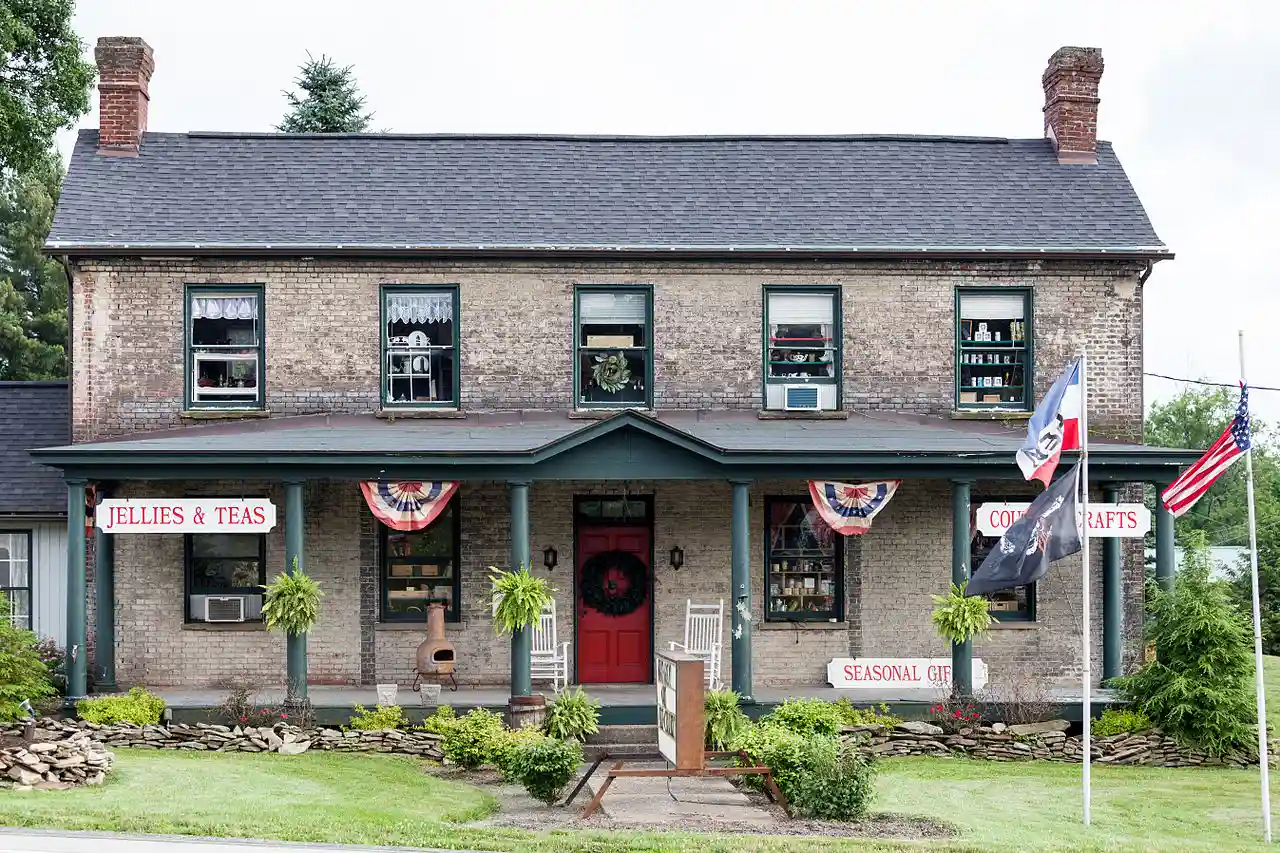 Downer Tavern, also known as the Jonathan Downer House, is a historic home that also served as an inn and tavern located in Chalk Hill, Wharton Township, Fayette County, Pennsylvania. It was built about 1826, and is a -story, 5-bay, brick building with a center hall floor plan with Federal style detailing. It has a two-story, kitchen ell. Also on the property is a -story stone spring house (now a residence) and a late-19th century frame wash house. It served as a stop for 19th-century travelers on the National Road. Note: This includes Read more on Wikipedia