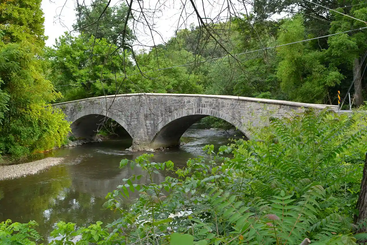 Bridge between Guilford and Hamilton Townships is a historic multi-span stone arch bridge located at Guilford Township and Hamilton Township in Franklin County, Pennsylvania. It is a , bridge with two spans each measuring . It was constructed before 1860. It crosses Conococheague Creek. Note: This includes Read more on Wikipedia