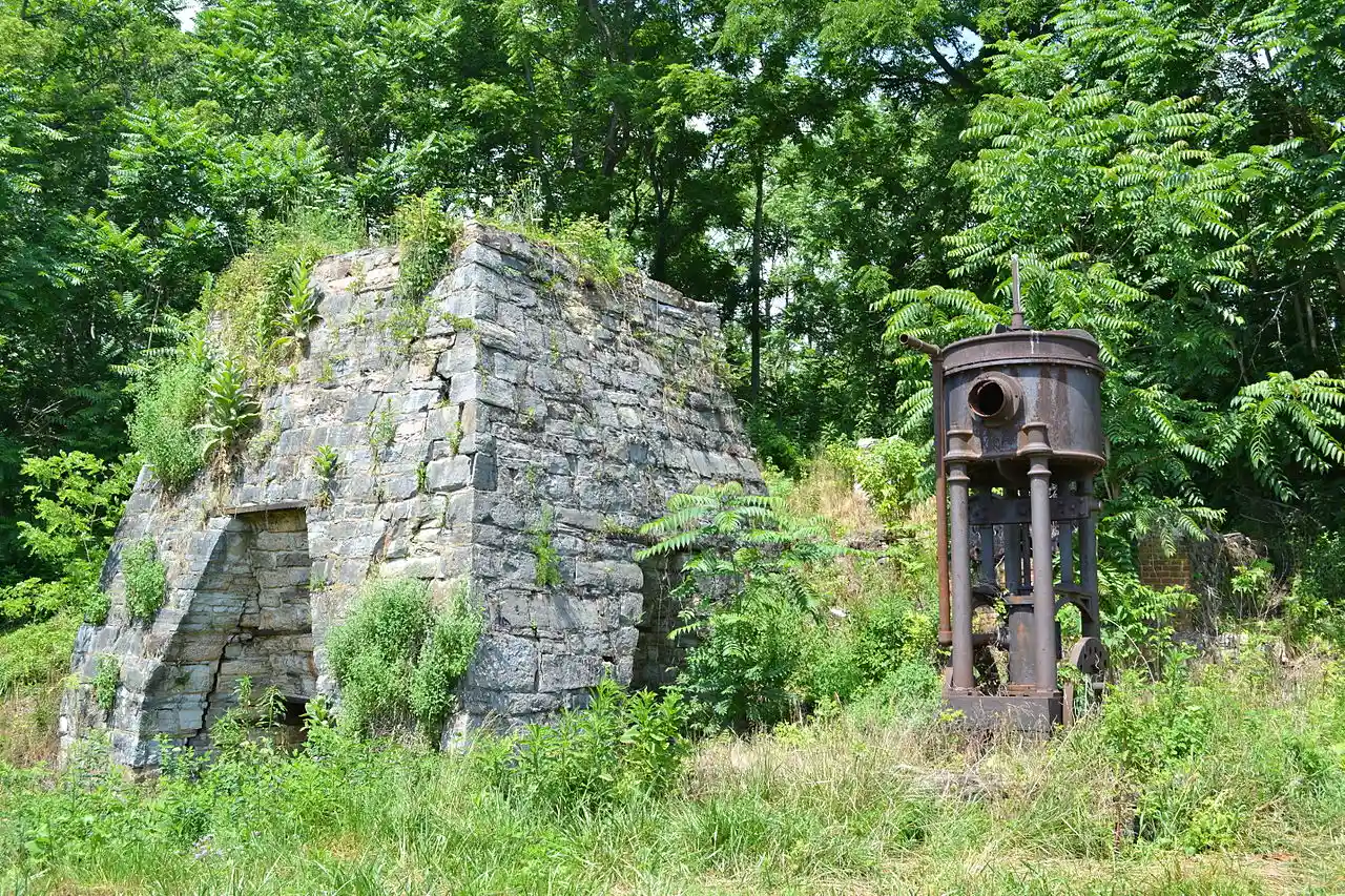 Carrick Furnace is a historic iron furnace located at Metal Township in Franklin County, Pennsylvania. The property includes the limestone furnace stack, a Peter L. Weimer blowing engine (1879), boilers for the steam engine, and the charging ramp, engine house, and cast house foundations. The furnace was built about 1828, and measures 30 feet square at the base and 30 feet high. Furnace operations were suspended in 1837, the property sold in 1843, then leased in 1850 to "Witherow and Walker." The furnace was converted in 1879 to hot blast with the installation of the steam-powered blowing engine. The furnace went out of blast in 1884, and was donated to the Franklin County Historical Society-Kittochtinney in 1935. In February 2020, the Carrick Furnace was purchased by the Path Valley Historical Society. Read more on Wikipedia