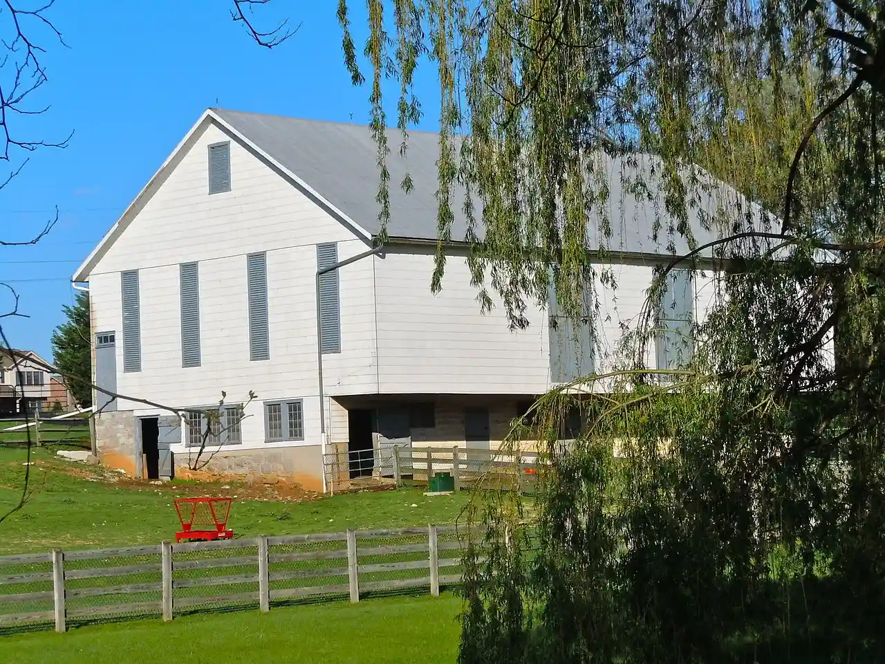 Coldbrook Farm is a historic home and farm located at Chambersburg in Franklin County, Pennsylvania. The property has a large stone house, a frame bank barn, and a stone spring house. All were built about 1800. The house consists of a two-story, five-bay, central section in the Georgian style, flanked by two-story, three-bay recessed wings. Colonial Revival-style modifications, such as roof dormers and colonnade were added in the late-19th century. Note: This includes Read more on Wikipedia