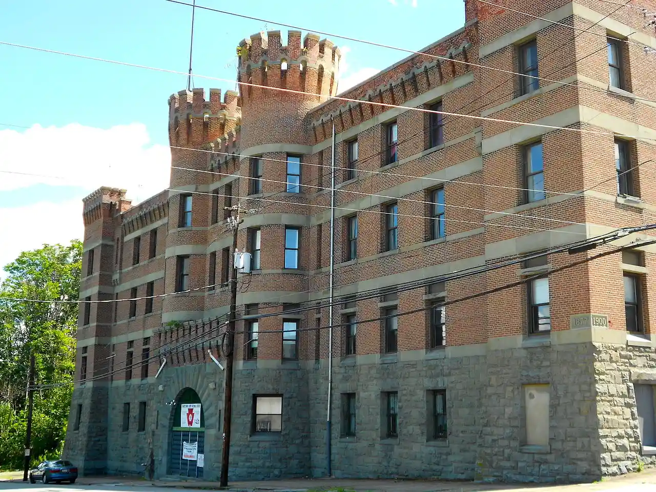 Scranton Armory is a historic National Guard armory located at Scranton, Lackawanna County, Pennsylvania. It was built in 1900, and is a four-story, 20 bays by 26 bays, brick and stone building executed in the Romanesque Revival style. The front facade features a central stone arch entrance flanked by crenellated towers. Note: This includes Read more on Wikipedia