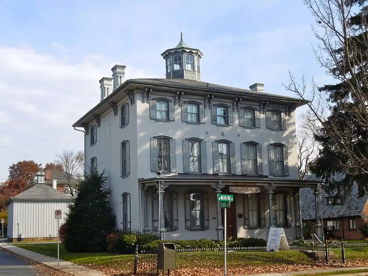 Connell Mansion is a historic home located at Ephrata, Lancaster County, Pennsylvania. It was built about 1860, and is a three-story, brick dwelling with a low hipped slate roof and octagonal cupola. It has a two-story, rear section with a one-story extension, both with gable roofs. Also on the property are a contributing carriage house and frame privy. Note: This includes Read more on Wikipedia