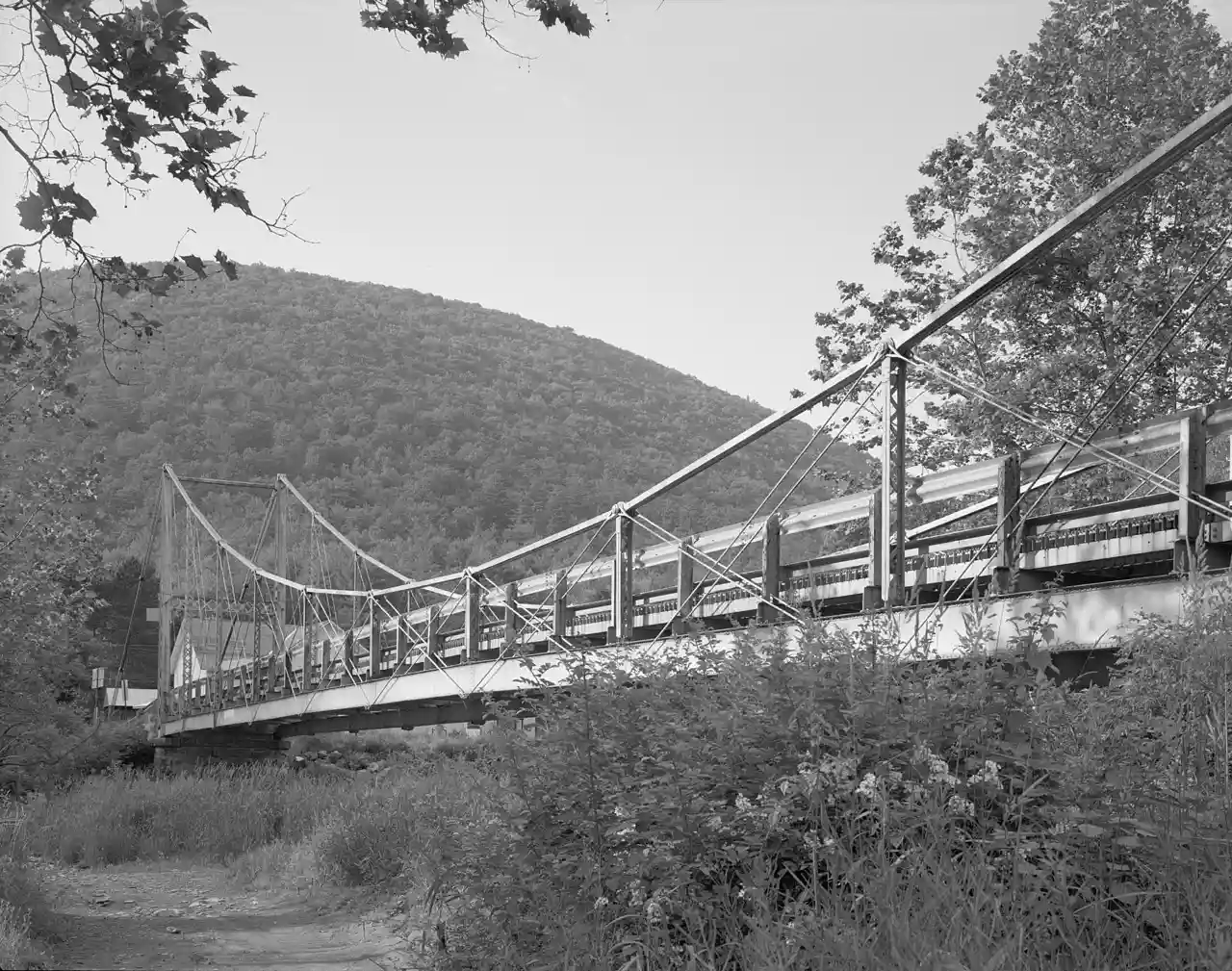 English Center Suspension Bridge is a historic suspension bridge spanning Little Pine Creek in Pine Township, Lycoming County, Pennsylvania. It was built in 1891 and has a single span measuring long and wide. Note: This includes Read more on Wikipedia
