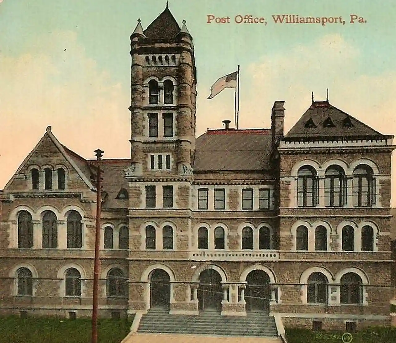 Williamsport City Hall, formerly the United States Post Office, is a historic building located at 245 West 4th Street between Government Place and West Street in Williamsport, Pennsylvania. It was built between 1888 and 1891, and is a 2 1/2 to 3-story building, with a two-story addition and six-story tower. The exterior is faced with rough-faced gray limestone ashlar. It was designed by the Office of the Supervising Architect under the direction of William A. Freret. Note: This includes Read more on Wikipedia