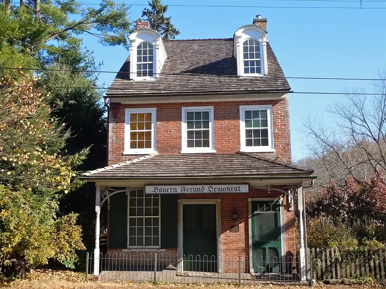 Bauern Freund Print Shop is a historic print shop located at Marlborough Township, Montgomery County, Pennsylvania. It was built in 1838, and is a 2 1/2-story, brick building with a gable roof. It has a front porch with a hipped roof. The building was built by Enos Benner, a German-American publisher of Der Bauern Freund (The Farmer's Friend) and other influential German language publications. Note: This includes Read more on Wikipedia