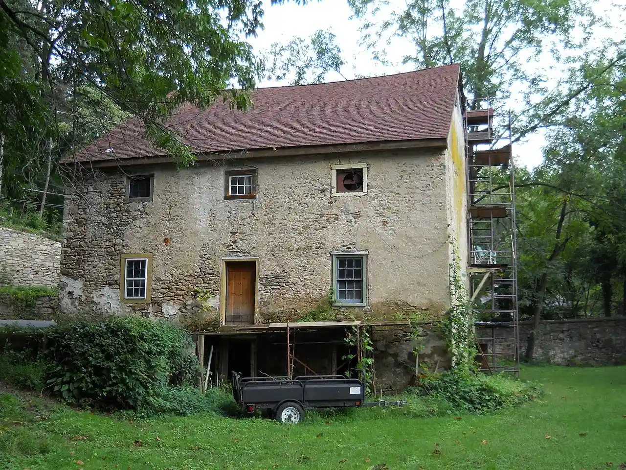 Fetter's Mill, also known as Louis Ewald Studio—Residence, is a historic grist mill located on Pennypack Creek at Bryn Athyn in Lower Moreland Township, Montgomery County, Pennsylvania. It was built in the 1740s, and is a five level, stucco over stone building of post and beam construction. It has an end gabled roof. It was enlarged about 1860, and in 1920 was converted to a residence and studio for decorative artist Louis Ewald. Adjacent to the mill is the contributing tail race. Note: This includes Read more on Wikipedia