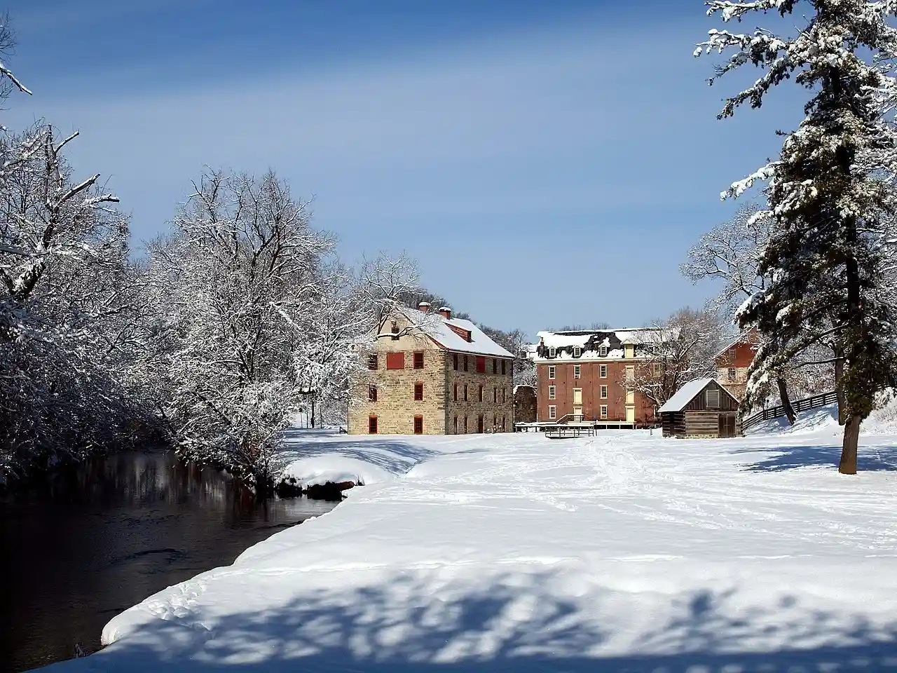 The Colonial Industrial Quarter in Bethlehem, Pennsylvania is considered America's earliest industrial park. Established by the colonial Moravians along the banks of the Monocacy Creek, the ten-acre site contains historic buildings such as the 1762 Waterworks (A National Historic Landmark), 1761 Tannery, 1869 Luckenbach Mill, 1748/1834 Gristmiller's House, reconstructed 1764 Springhouse and 1750 Smithy, as well as ruins of the original 1749 Pottery, 1752 Butchery, 1765 Oil Mill, and 1771 Dye House. This location was chosen to take advantage of a spring that supplied potable water and the power supplied by the Monocacy Creek's flow for the craftsmen and trades of early Bethlehem. Read more on Wikipedia