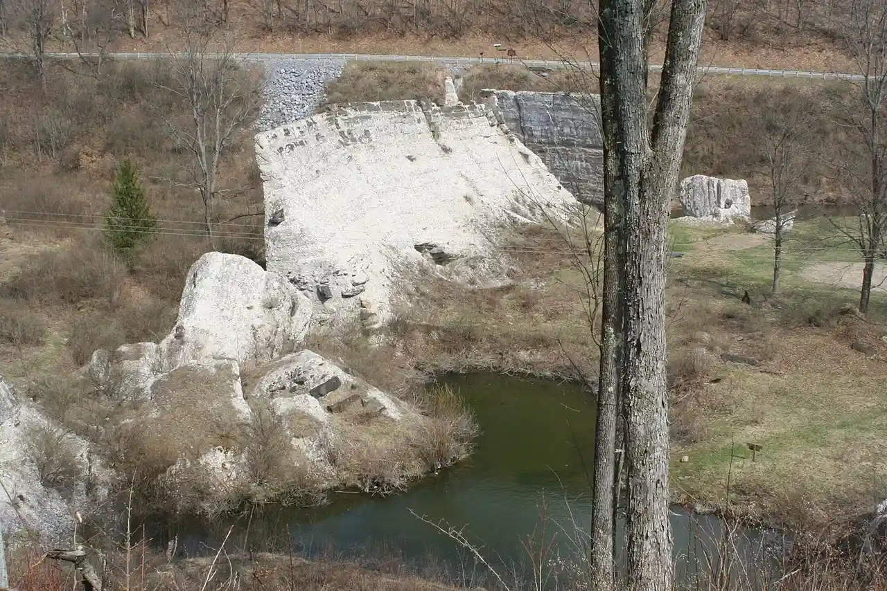 The Austin Dam, also known as the Bayless Dam, was a concrete gravity dam in the Austin, Pennsylvania, area that served the Bayless Pulp and Paper Mill. Built in 1909, it was the largest dam of its type in Pennsylvania at the time. The catastrophic failure of the dam on September 30, 1911, caused significant destruction and loss of life in Freeman Run Valley below the dam. Read more on Wikipedia