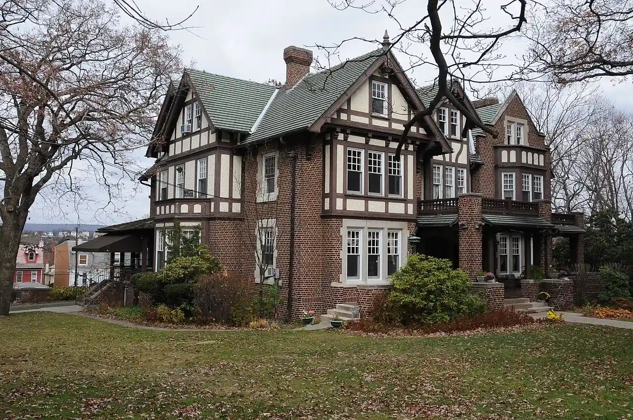 Frank D. Yuengling Mansion is a historic home located in Pottsville, Schuylkill County, Pennsylvania. It was built in 1913, and is a large three-story dwelling in the Tudor-Jacobean style. It is constructed of brick, stucco, and half-timbering and contains 20-plus rooms. It features side and rear porches, a front portico, stone facing, and many gables, overhanging balconies, and brick chimneys. Also located on the property are a contributing Jacobean style garage, formal garden with decorative statuary and sundial, and sunken garden with gazebo. The house was the first house to have a telephone and electricity in at Pottsville, Schuylkill County, Pennsylvania. It was built by Frank D. Yuengling of the Yuengling brewery, grandson of David Yuengling. The house is used as a cultural center and education facility, managed by the Schuylkill County Council For The Arts. Note: This includes Read more on Wikipedia