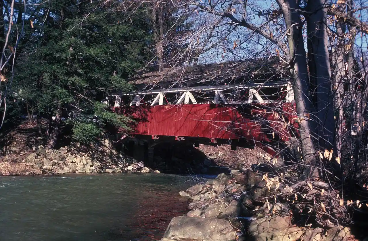 The Shaffer's Bridge is a historic covered bridge in Conemaugh Township, Somerset County, Pennsylvania. It was built in 1877, and is a Burr truss bridge, with a shingle covered gable roof. The bridge crosses Ben's Creek. It is one of 10 covered bridges in Somerset County. Note: This includes Read more on Wikipedia