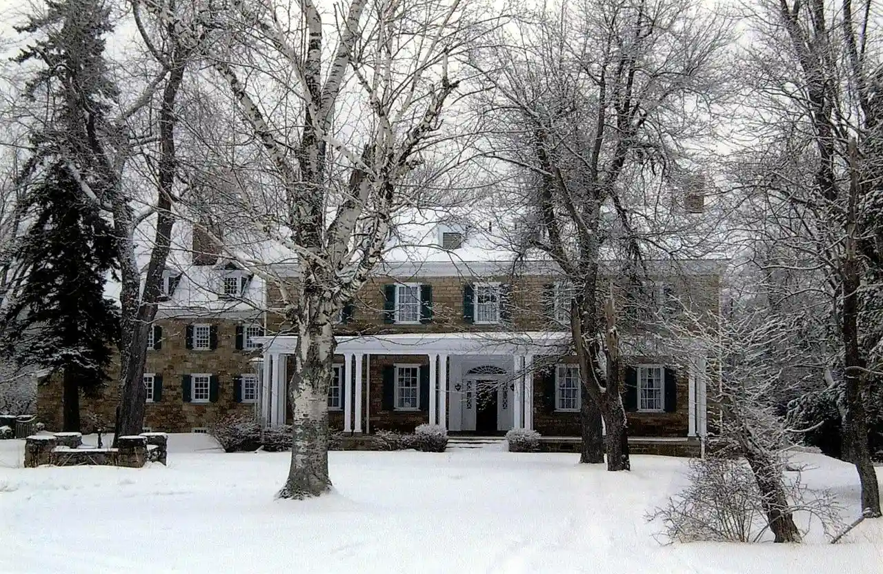 The Clemuel Ricketts Mansion (also known as the Stone House, the William R. Ricketts House, and Ganoga) is a Georgian-style house made of sandstone, built in 1852 or 1855 on the shore of Ganoga Lake in Colley Township, Sullivan County, Pennsylvania in the United States. It was home to several generations of the Ricketts family, including R. Bruce Ricketts and William Reynolds Ricketts. Originally built as a hunting lodge, it was also a tavern and post office, and served as part of a hotel for much of the 19th century. Read more on Wikipedia