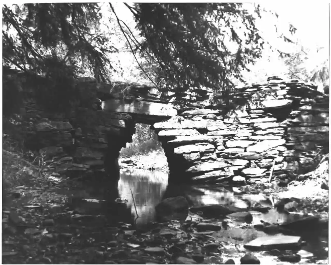 The Bridge in Gibson Borough near South Gibson, Pennsylvania was a stone false arch bridge over Bell Creek, north of its confluence with Tunkhannock Creek. It was constructed sometime between 1750 and 1824 and listed on the National Register of Historic Places in 1988. Read more on Wikipedia