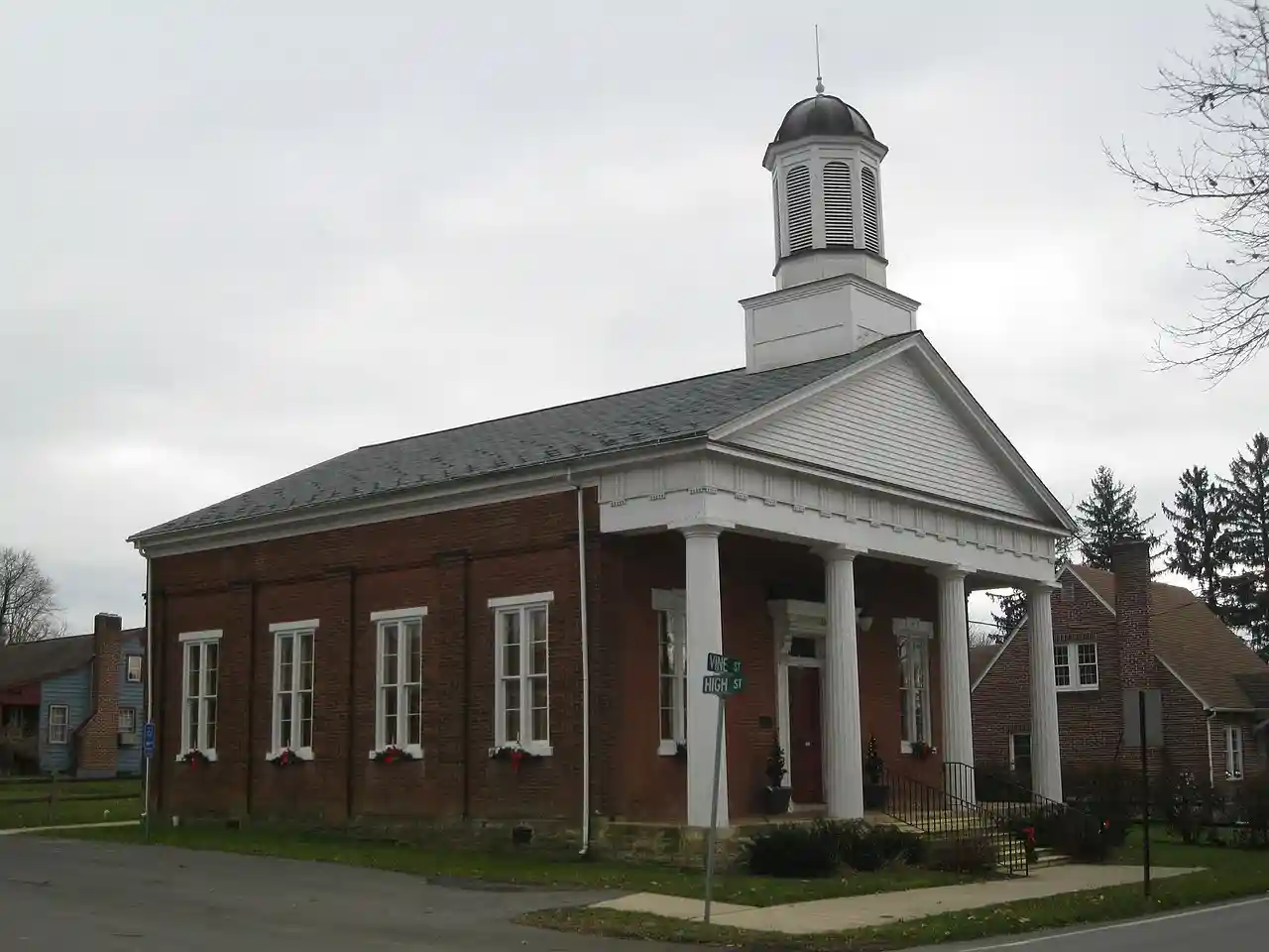New Berlin Presbyterian Church, also known as New Berlin Community Center, is a historic Presbyterian church located at Vine and High Streets in New Berlin, Union County, Pennsylvania. It was built in 1843, and is a one-story, brick building, three bays wide and four bays deep, in the Greek Revival style. It features a portico supported by four Doric order columns and an octagonal cupola. It has been used as a community center since 1933. Note: This includes Read more on Wikipedia