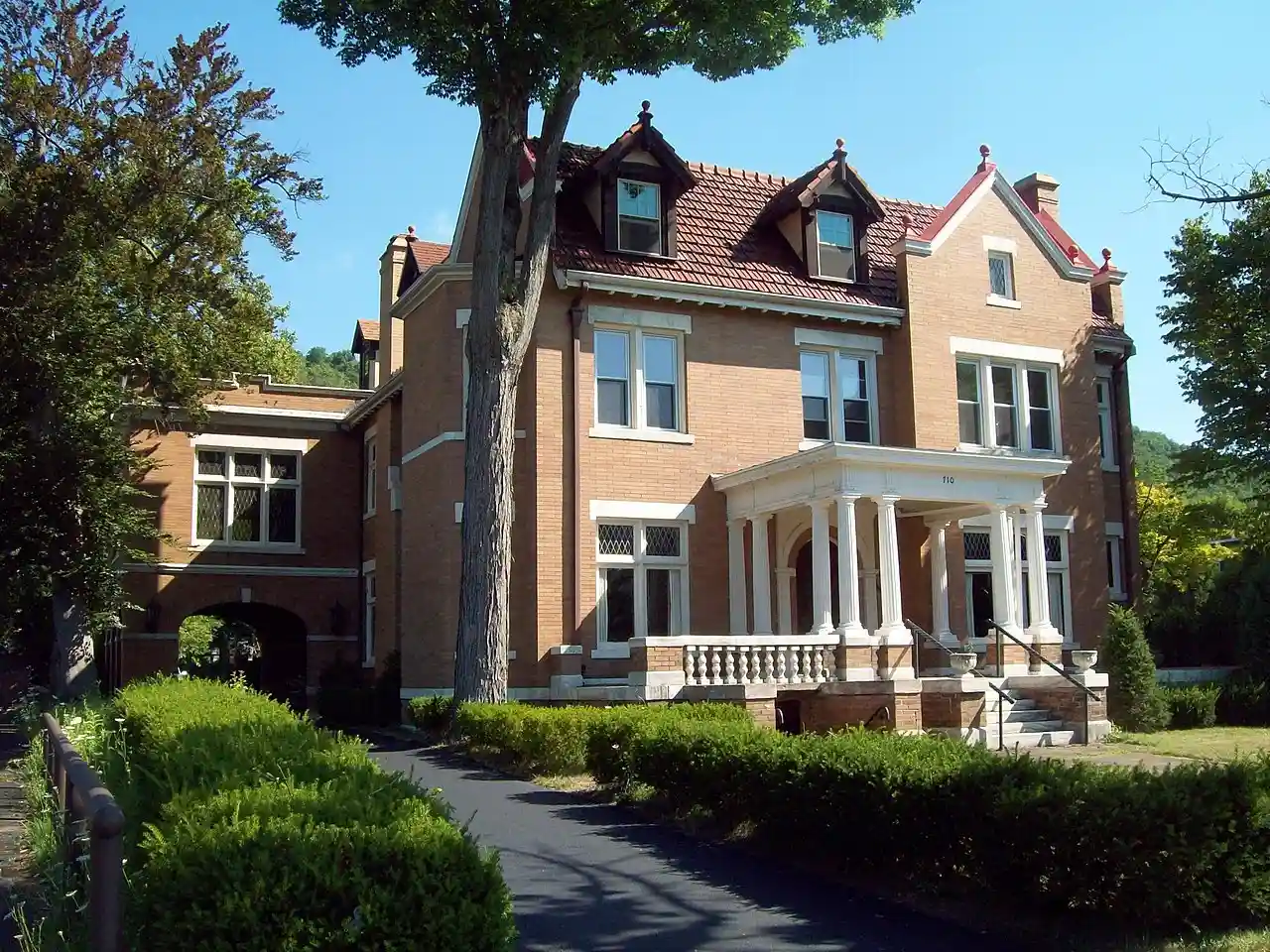 A. J. Hazeltine House, also known as the Honorable Charles Warren Stone Museum, is a historic home located at Warren, Warren County, Pennsylvania. It was built in 1905–1907, and is a three-story, buff brick dwelling in the Jacobean style. It features marble lintels and capstones and wide terraces on two sides of the house. Its builder, A. J. Hazeltine, was a business associate of Congressman Charles Warren Stone (1843-1912). The American Legion occupied the house starting in 1928. It was acquired by the county for the Warren County Historical Society in 1975. Note: This includes Read more on Wikipedia