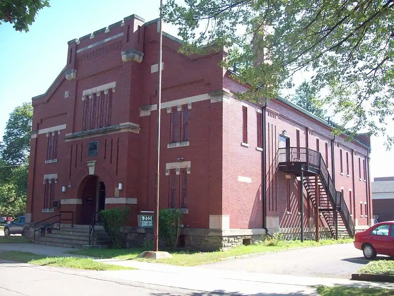 Warren Armory is a historic National Guard armory located at Warren, Warren County, Pennsylvania. It was built in 1909, and is a 2 1/2-story, brick building with a gambrel roof in the Romanesque style. The drill hall is located on the second floor. It has a projecting central entrance bay, stone sills and lintels, brick turrets, and a crenelated parapet. Note: This includes Read more on Wikipedia
