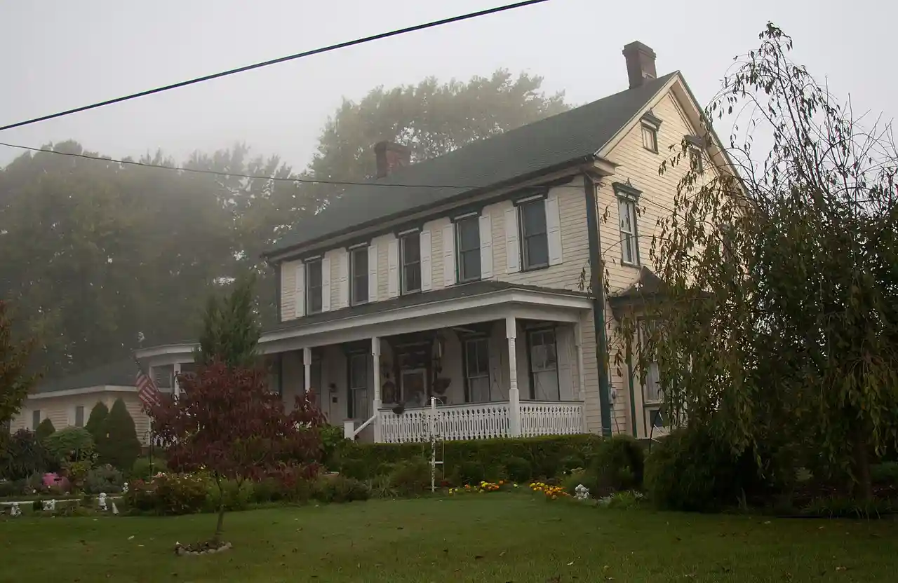Andrew and Jennie McFarlane House, also known as the William Larimer, Sr. House, is a historic home located in North Huntingdon Township, Westmoreland County, Pennsylvania. It is a -story, L-shaped, log and frame dwelling with cedar siding. The original log section was built between 1790 and 1798. It has a rear wood-frame addition built in 1870. At the same time, the house was renovated in the Italianate style. A wraparound porch was added in 1989. Note: This includes Read more on Wikipedia