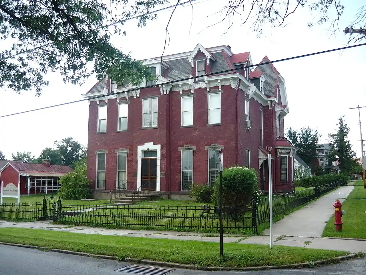 Samuel Warden House is a historic home located at Mount Pleasant, Westmoreland County, Pennsylvania. The house was built in 1886, and is a three-story, square brick dwelling in the Second Empire style, with Queen Anne and Eastlake style details. It has a mansard roof clad in octagonal, fishscale slate with dormer windows. Note: This includes Read more on Wikipedia