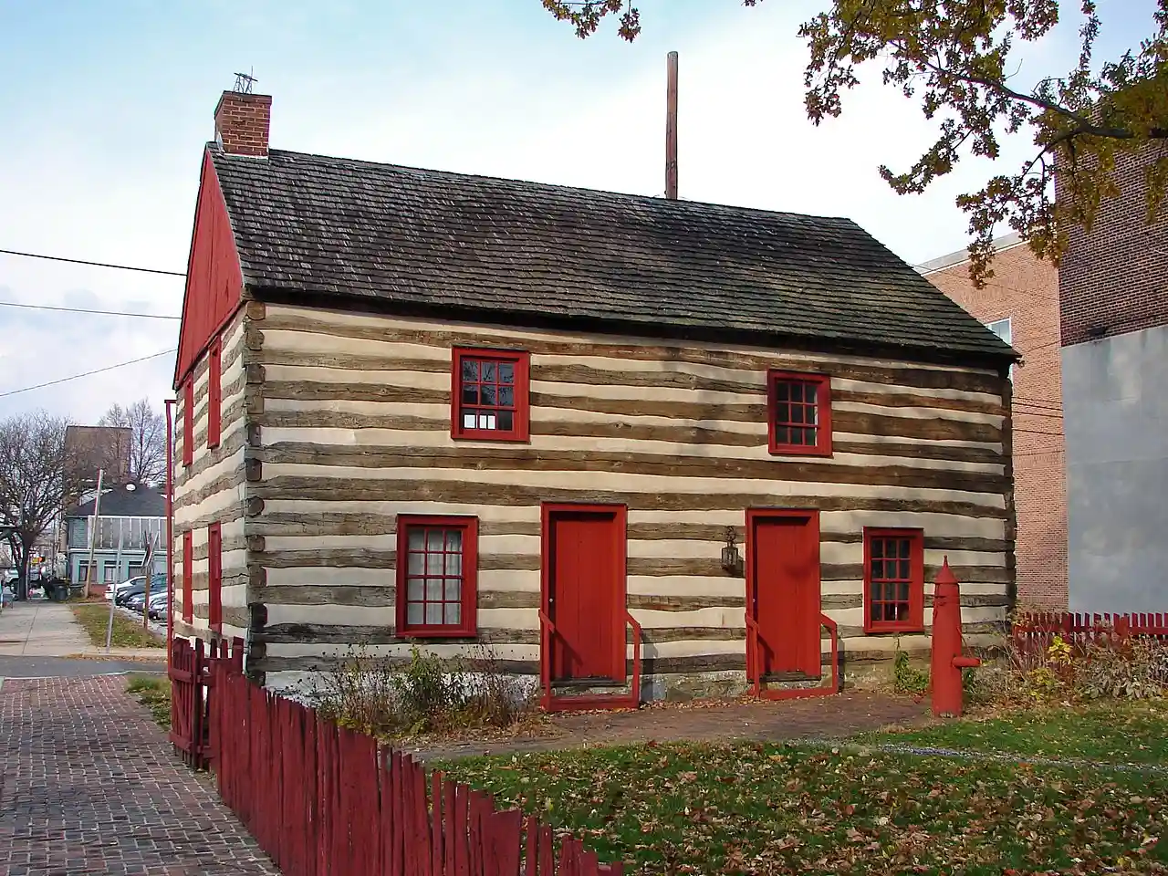 The Barnett Bobb House, also known as the Old Log House, is a historic building in downtown York, Pennsylvania, York County, Pennsylvania. It was originally located at the intersection of Pershing and College Avenues. In 1968, it was moved to its current location and restored. It is on the same site as the General Horatio Gates House and Golden Plough Tavern. It was built in 1811, and is a two-story log dwelling with dovetailed corners. Note: This includes It houses a museum operated by the York County Heritage Trust that showcases family life during the 1830s. Read more on Wikipedia