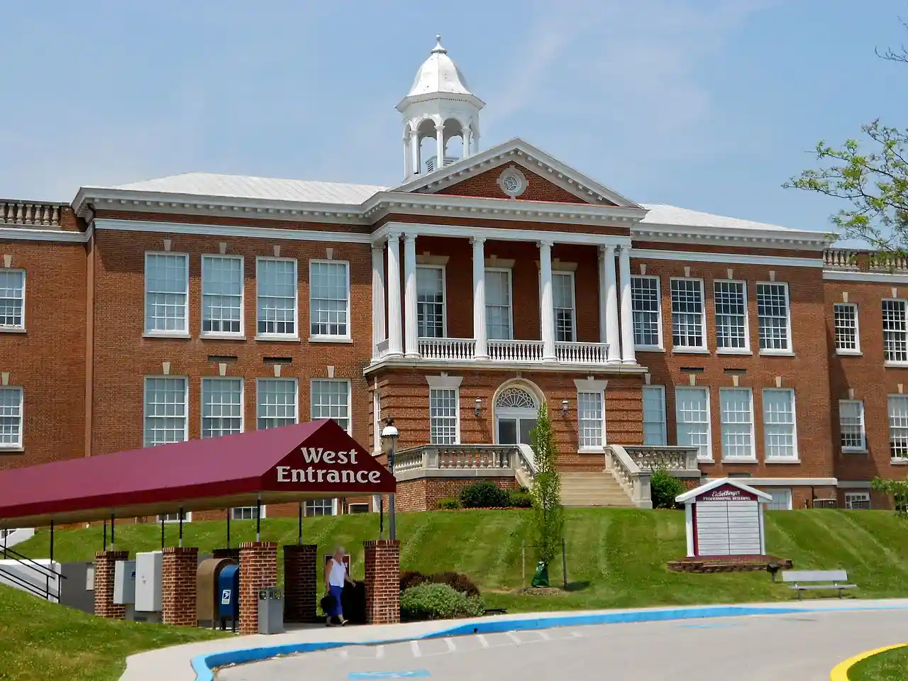 Eichelberger High School, also known as Hanover Middle School and Eichelberger Academy, is a historic high school building located at Hanover, York County, Pennsylvania. It was built in 1896, and altered and expanded in 1931-1932, with few design elements from the original building remaining. It is a five-part brick building in the Georgian Revival style, with a main building flanked by two wings connected by hyphens. The main building features a portico supported by six Ionic order columns and topped by a hipped roof and cupola. Note: This includes Read more on Wikipedia