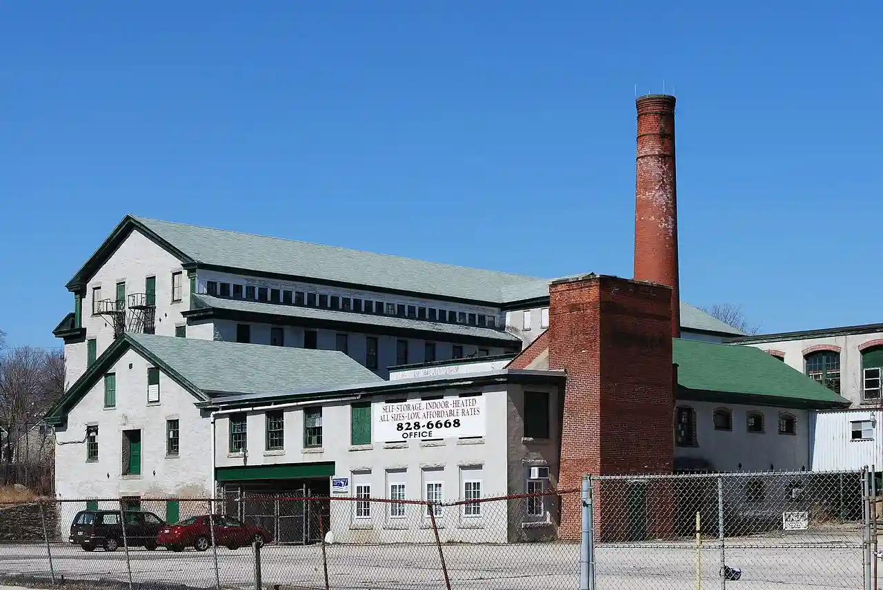 The Harris Mill, also known as the Interlaken Mills, is a historic mill complex at 618 Main Street in the Harris village of Coventry, Rhode Island. This complex of ten buildings occupies a parcel adjacent to the North Branch of the Pawtuxet River. The oldest portion of the main mill building dates to 1850, with a major expansion added in 1870. The mill was founded by Elisha Harris, who had recently served as Governor of Rhode Island, and produced cotton twill cloth. It was acquired by Interlaken Mills in 1900, for whom it had been a major supplier, and was operated until 1953. In 2014, the long abandoned mill was restored and renovated into an apartment complex. Read more on Wikipedia