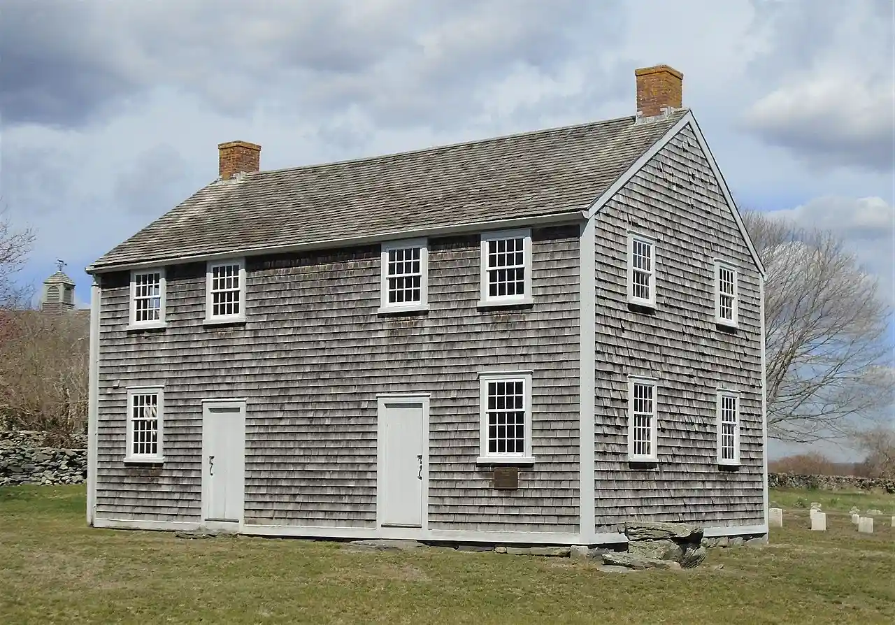 The Friends Meeting House and Cemetery is a historic Quaker meeting house and cemetery at 228A W. Main Road in Little Compton, Rhode Island. The meeting house is a two-story wood-frame structure built in 1815 by the Religious Society of Friends, commonly known as Quakers, on the site of their first meeting house built in 1700 on land granted to John Irish. The new meeting house used some materials from the original one. It was then modified in 1870. Read more on Wikipedia
