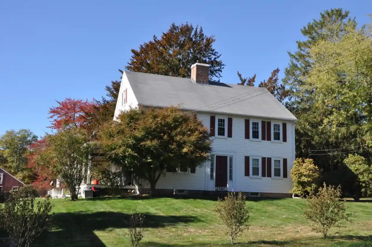 The Amos Cook House is an historic house in Scituate, Rhode Island. Built in 1812, it is a -story wood-frame structure, five bays wide, with a large central chimney. The center entry is framed by a Greek Revival surround that was a later alteration, and there is a shed-roof porch extending along the southern (left) facade. The house has retained much of its interior woodwork. The house was built by Augustus and Carver Hopkins, members of Rhode Island's prominent Hopkins family. It was purchased, along with a number of farm outbuildings, by Amos Cook in 1865, and was converted into a summer residence in the early 20th century. Read more on Wikipedia