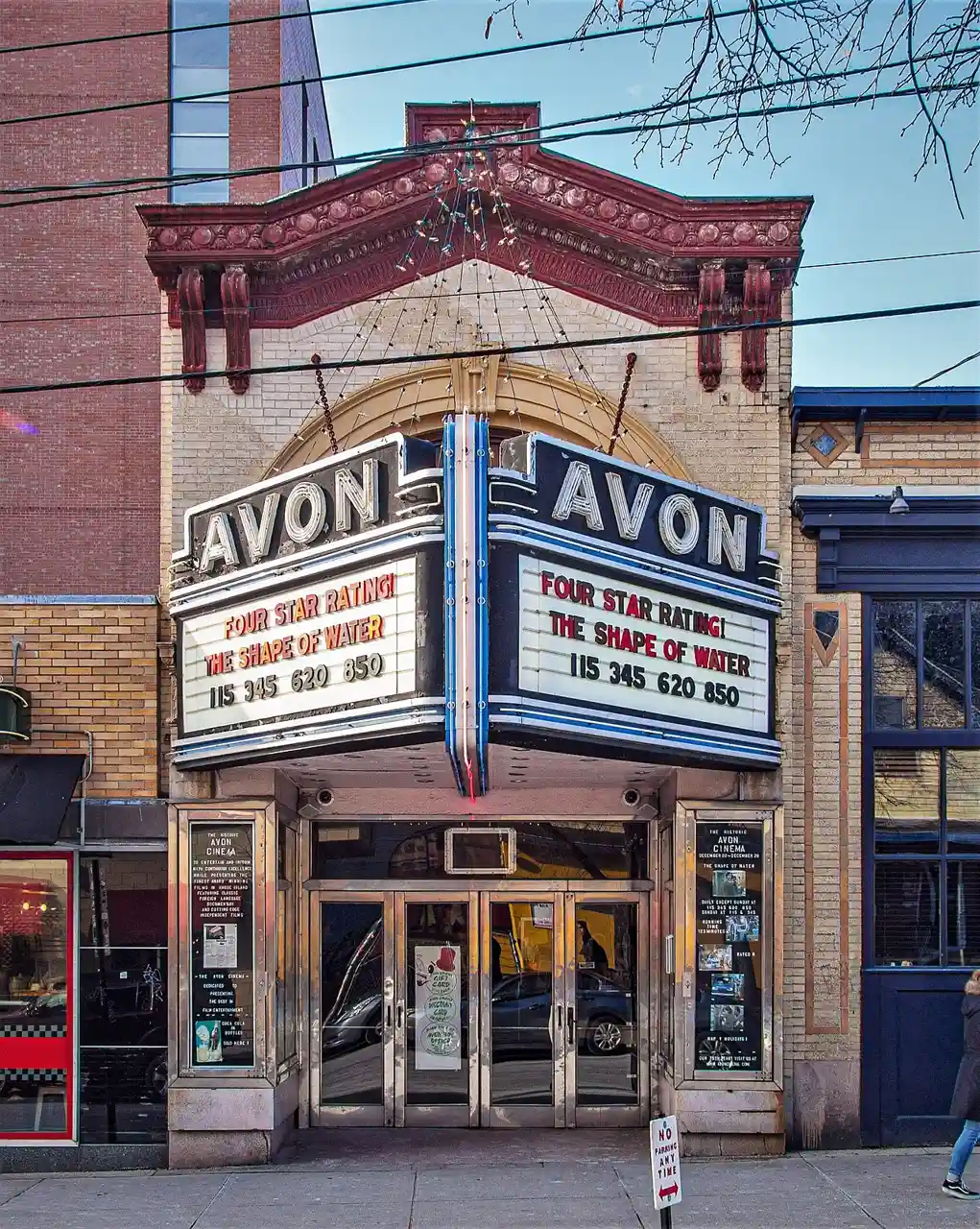 The Avon Cinema is an independent movie theater near Brown University on the East Side of Providence, Rhode Island. The Avon's Art Deco styling dates from its opening in February 1938.Avon Cinema The theater primarily screens independent, art house, and foreign films. The theatre has been owned by the same family since 1938. It seats 486 and has one screen. Read more on Wikipedia