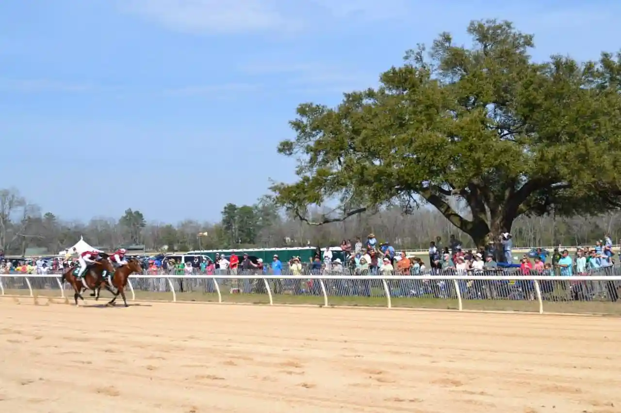 The Aiken Training Track, with its banked turns and soft straightaways, was considered one of the best tracks in the country upon its completion in 1941. Notable surrounding buildings include a stable, shed and grandstand. The track and supporting structures, as well as other (non-historic register) structures may be enjoyed and viewed from the quiet roads that border the large district. The Aiken County Training Track, located in Aiken, South Carolina, was listed in the National Register of Historic Places on May 9, 1985. Read more on Wikipedia